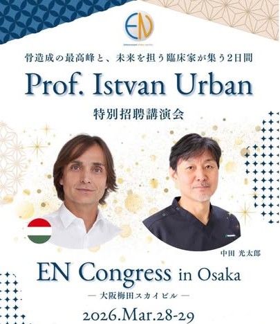 2026.3.29にインプラント治療における骨造成の世界的権威であるハンガリーのイシュトヴァン・アーバン(Istvan Urban)先生が「ENの会大阪」にて特別講演会が開催され当院副院長の舘野先生が参加しました。